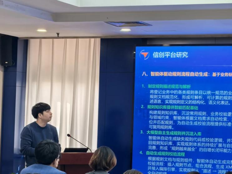 北京市测绘设计研究院主任工程师、正高级工程师董承玮以《不动产登记业务标准化及信创改造探索》为题做报告,系统阐述了如何通过业务场景规范定义与流程再造的标准化建设工作,为信息化奠定坚实基础;并分享了通过全栈信创技术研究和平台研发,支撑快速构建业务场景,实现业务智能化驱动体系的宝贵经验。