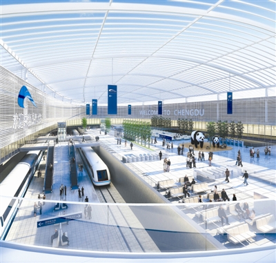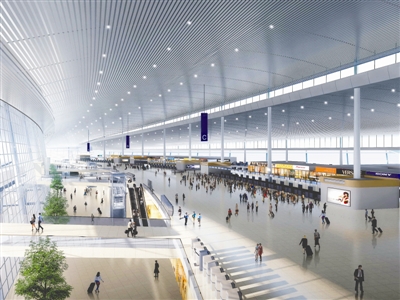 天府国际机场GTC中央大厅、地铁站效果图