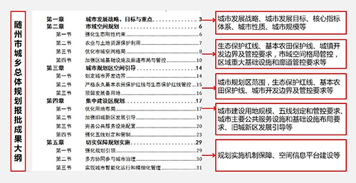 近年来,清华同衡借助高校规划院的产学研优势,不断加大在城市总体规划编制改革上的研究探索和实践。受湖北省住房城乡建设厅委托,以随州市为样板,牵头开展《随州市城乡总体规划编制改革试点研究》,形成了改革成果,积累了相关经验。面向实施、服务管理,在城市总体规划编制进程中,全面推进技术、政策、管理在城市总体规划成果上的融合统一,是北京清华同衡规划设计研究院在推进城市总体规划改革创新中的重要切入点。在随州市城乡总体规划编制过程中,主要开展了以下七方面的创新性举措:
